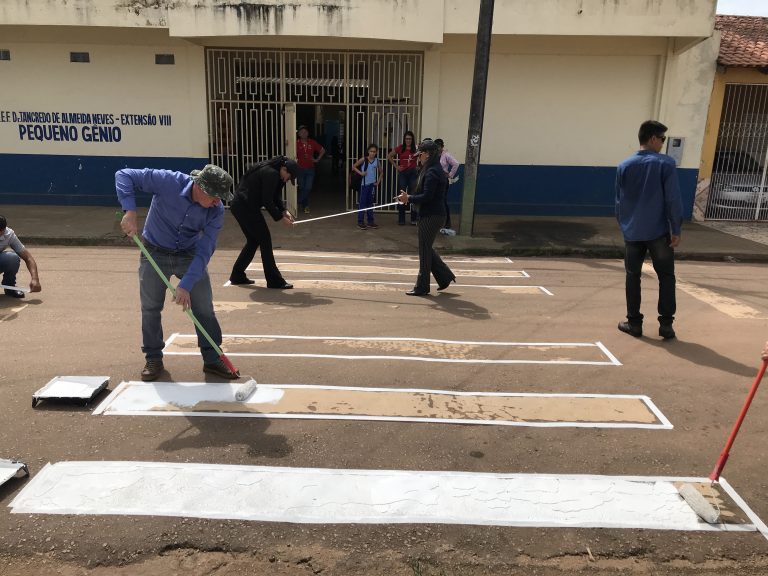 A primeira escola a receber a pintura de faixa foi a Escola Municipal de Ensino Infantil e Fundamental Padre Geovani Mendes
