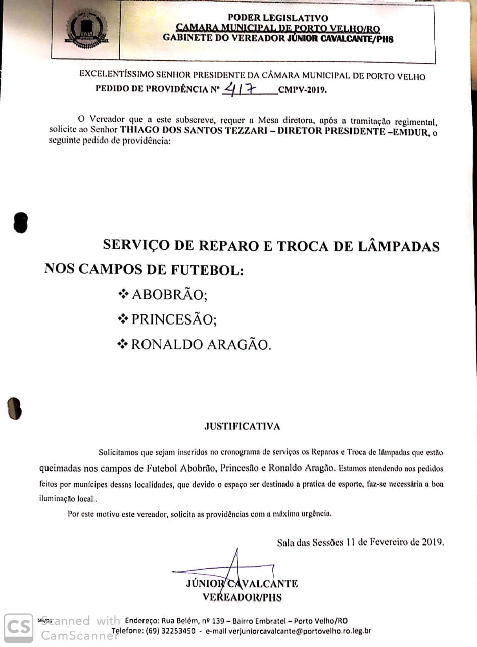 A comunidade local havia feito solicitação ao vereador e o mesmo enviou Pedido de Providencia a Emdur requisitando a implantação, reparos e troca de lâmpadas queimadas do Campo Princesão no Bairro Socialista.