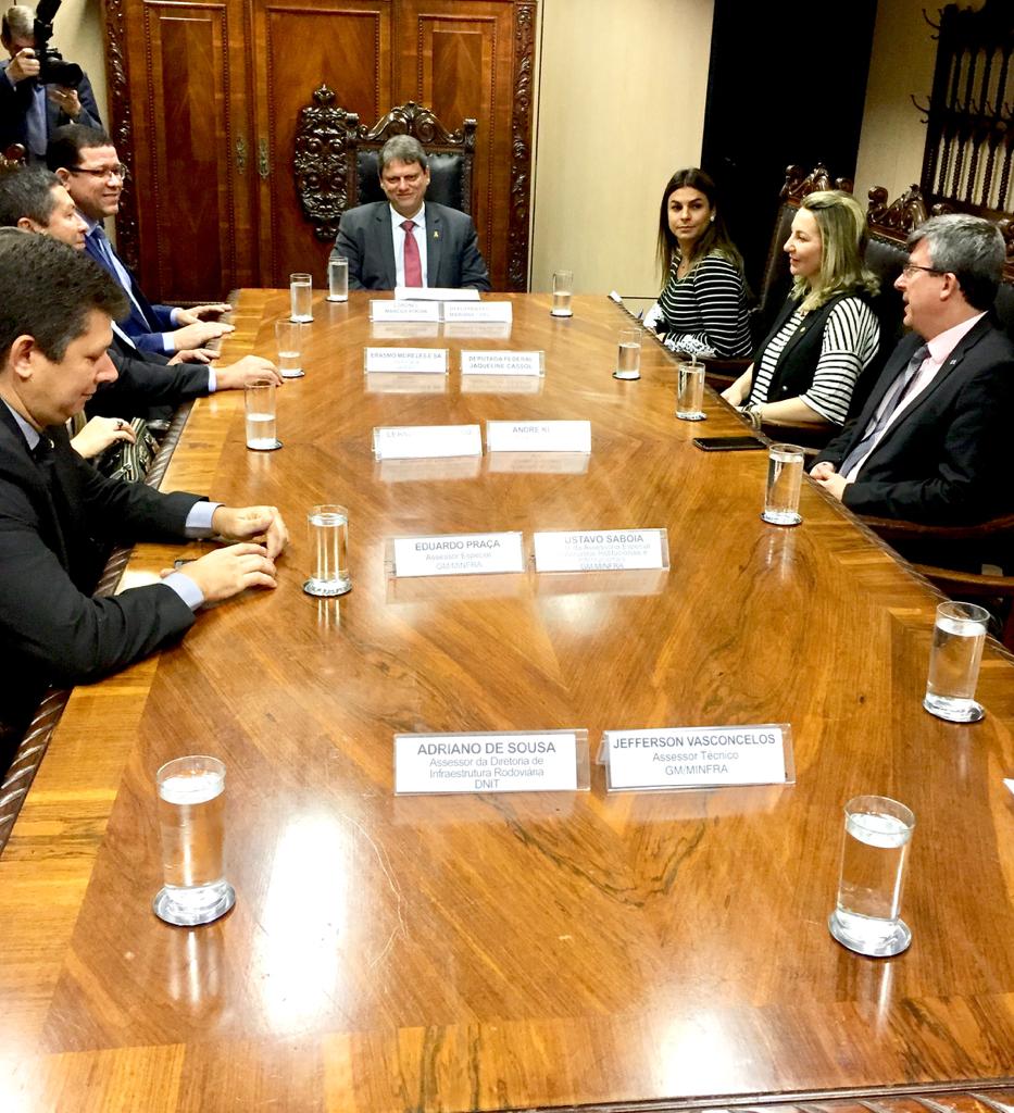 A deputada federal Jaqueline Cassol (PP-RO) se reuniu com o ministro da Infraestrutura, Tarcísio Gomes, nesta quinta-feira (9), em Brasília, para tratar sobre as rodovias de Rondônia. Também participaram do encontro a deputada Mariana Carvalho (PSDB-RO), o Governador Marcos Rocha (PSL), o diretor do Departamento de Estradas de Rodagens, Infraestrutura e Serviços Públicos do Governo de Rondônia (DER) Erasmo Meireles e Sá e o diretor executivo do Departamento Nacional de infraestrutura de Transportes (DNIT), André Kuhn.