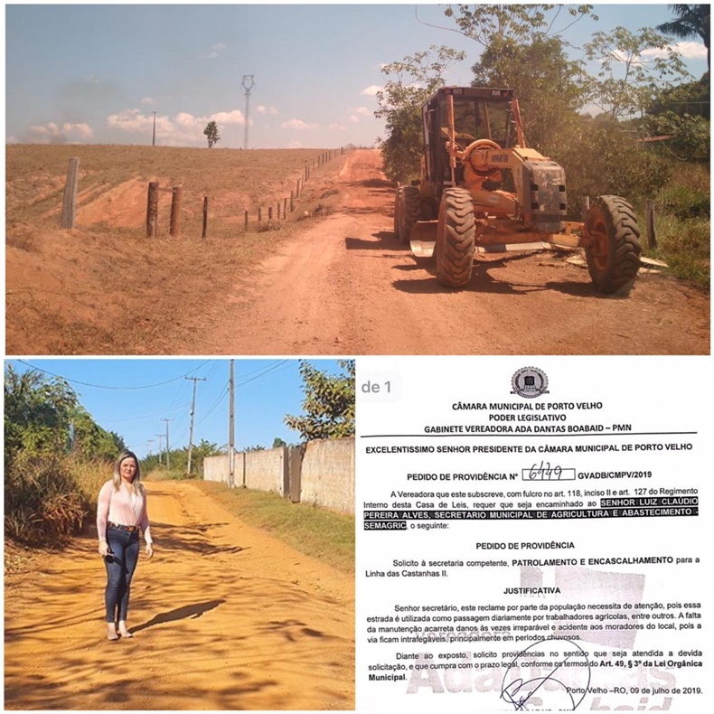 No dia 8 deste mês a vereadora Ada Dantas Boabaid (PMN) esteve visitando moradores da Linha das Castanhas I e II, localizadas na área rural de Porto Velho. Na oportunidade, a vereadora foi informada sobre a precariedade das vias, que está prejudicando os populares da região.