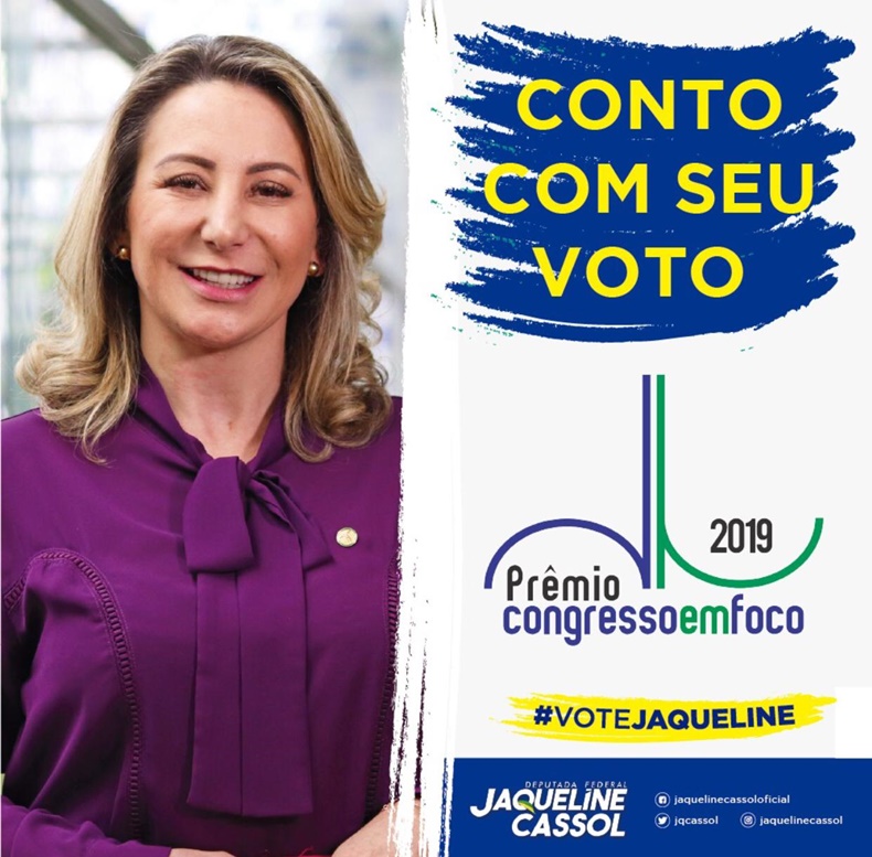 A deputada federal Jaqueline Cassol, presidente do Progressistas em Rondônia e vice-líder do partido na Câmara dos Deputados, foi indicada e concorre ao Prêmio Congresso em Foco 2019. São indicados para a premiação parlamentares que atendam alguns pré-requisitos, entre eles ter ficha limpa e conduta ilibada. Através da internet a população pode participar da escolha dos melhores deputados e senadores do ano.