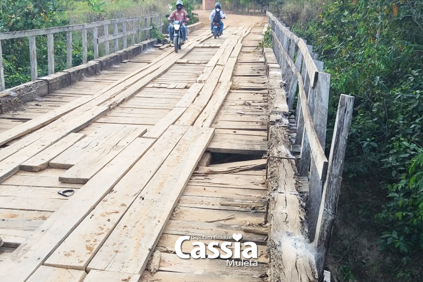 Na última sexta-feira (09), a equipe da parlamentar foi até o local para conversar com moradores e ver a situação da ponte. “A minha equipe constatou que, de fato, a ponte está em condições precárias e que colocam em risco a vida dos moradores e outros usuários da via”, afirmou Cássia.