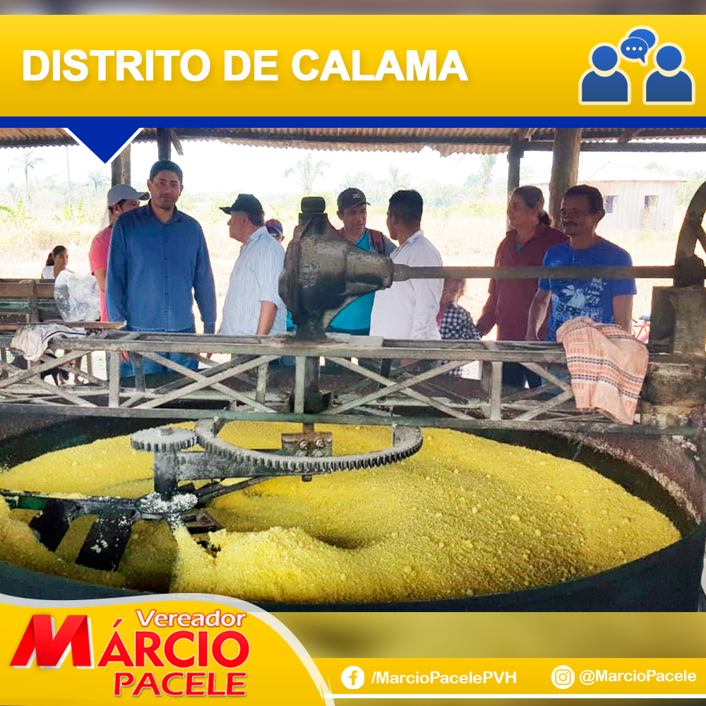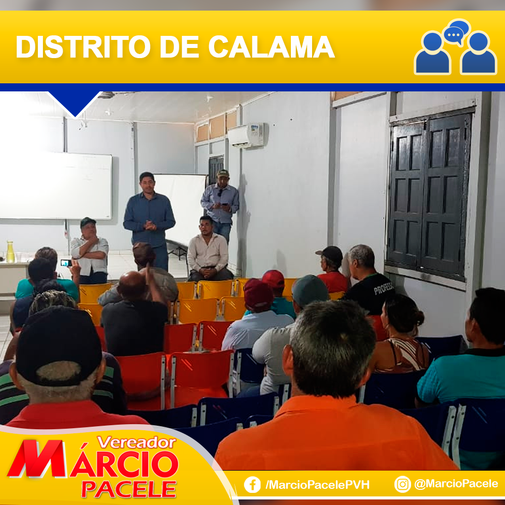O Vereador Márcio Pacele esteve reunido no Distrito de Calama neste final de semana, junto com o Sec. Da Agricultura, Luiz Cláudio e o Presidente da Associação dos Agricultores, Simião para tratar de vários assuntos que precisam ser resolvidos na região, como: