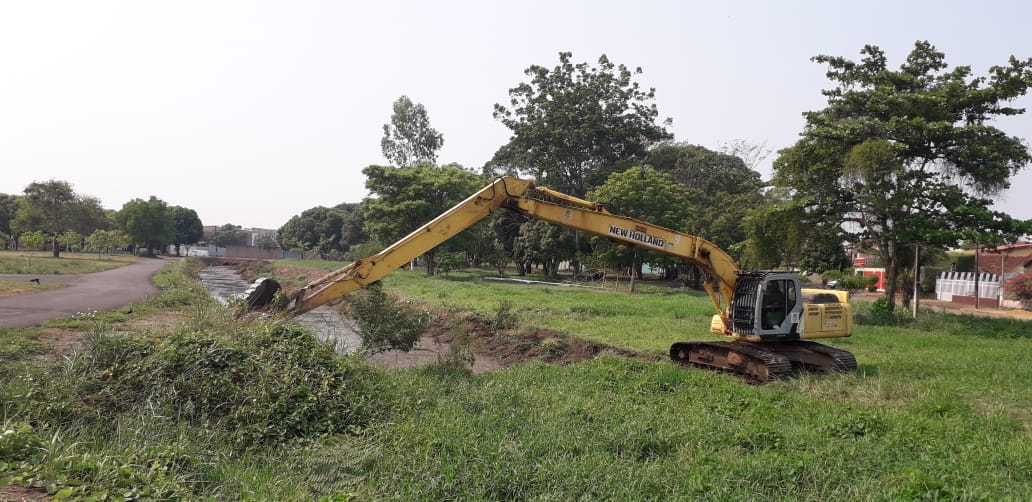 Neste exato momento está sendo executado as etapas de Instalação de tubo armico, limpeza do canal, e escavação para implantação de mais de 100 postes na área interna do skate park.
