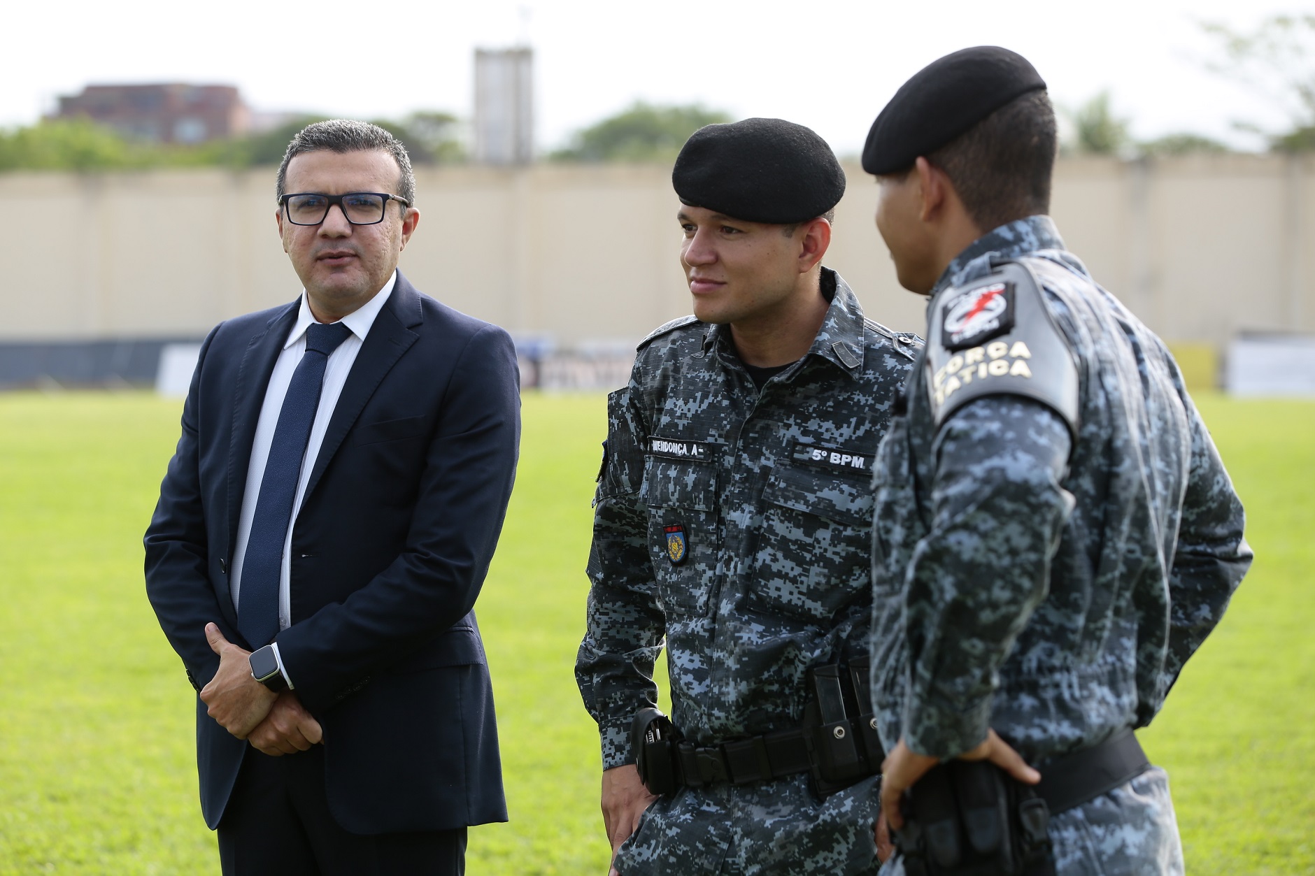 A solenidade contou com a presença do Comandante Geral da PMRO, Cel PM Mauro Ronaldo Flores, o Secretário Adjunto da Sesdec, Del Hélio Gomes Ferreira, o Secretário Sub Chefe da Casa Militar, Major PM Alexandre Gonçalves Viana, o Superintendente da Sugesp, Cel PM Carlos Lopes Silva, o Chefe do NOA, Del Evanilson Calixto Ferreira, o representante da Câmara Municipal, Vereador Edesio Fernandes, o Coordenador do Grupo Universal nas Forças Armadas, Pastor Jeferson da Cruz e o Bispo da Igreja Universal, Roque Santos, e finalizou com uma exposição de armamentos e equipamentos promovida pelas Forças.