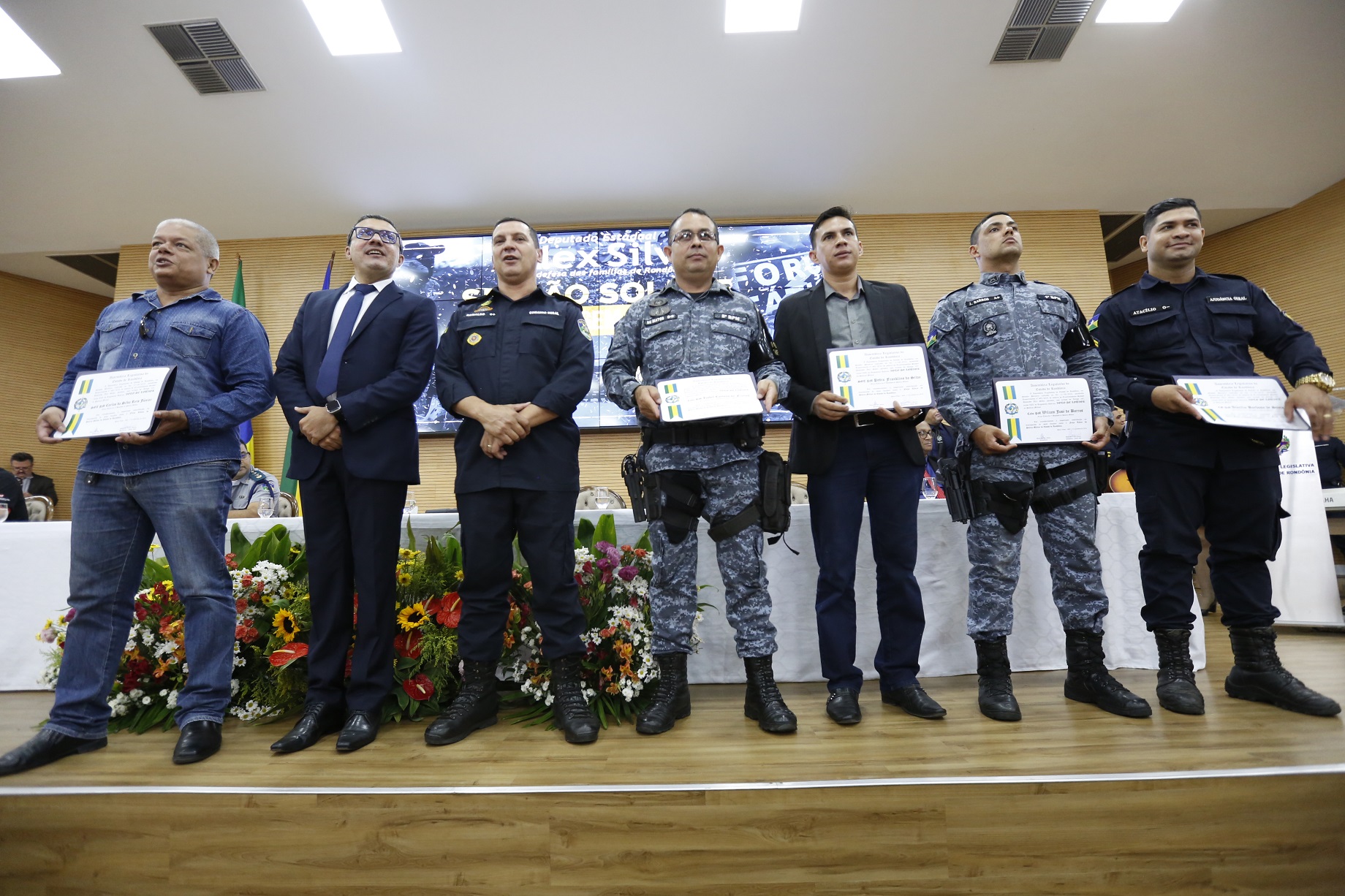 Em seguida, aconteceu o momento mais aguardado, a Sessão Solene, onde o Deputado Alex Silva enalteceu as instituições, falou da grande importância destas para o fortalecimento da segurança pública em Rondônia e entregou o voto de louvor à cerca de 200 policiais da Força Tática e do NOA, como forma de reconhecimento, agradecimento e valorização, pelos relevantes serviços prestados à toda sociedade rondoniense.