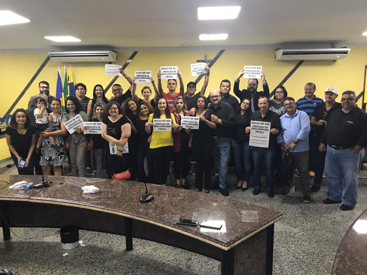Jornalistas de Porto Velho reuniram-se na Câmara Municipal de Porto Velho, para discutir os efeitos da Medida Provisória 905/2019, que extingue a obrigatoriedade do registro profissional. A reunião contou ainda com a presença de radialistas e publicitários, que também serão atingidos e ampliaram a discussão em torno da regulamentação dos profissionais da comunicação em geral.