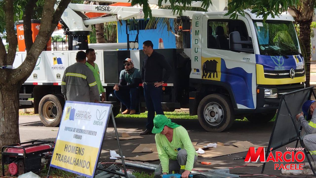 Na manhã de terça-feira (10), o vereador Márcio Pacele esteve fiscalizando a implantação de postes de iluminação pública que solicitou para a praça do Skate Parque que fica localizada na Av. José Vieira Caúla com Guaporé, bairro Cuniã.