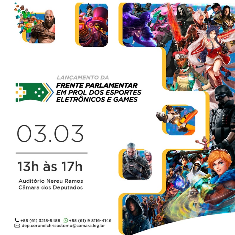 No próximo dia 03 de março de 2020 haverá o lançamento da FRENTE PARLAMENTAR EM PROL DOS ESPORTES ELETRONICOS E GAMES no auditório Nereu Ramos, na Câmara dos Deputados em Brasília. O evento acontecerá das 13h às 17h.