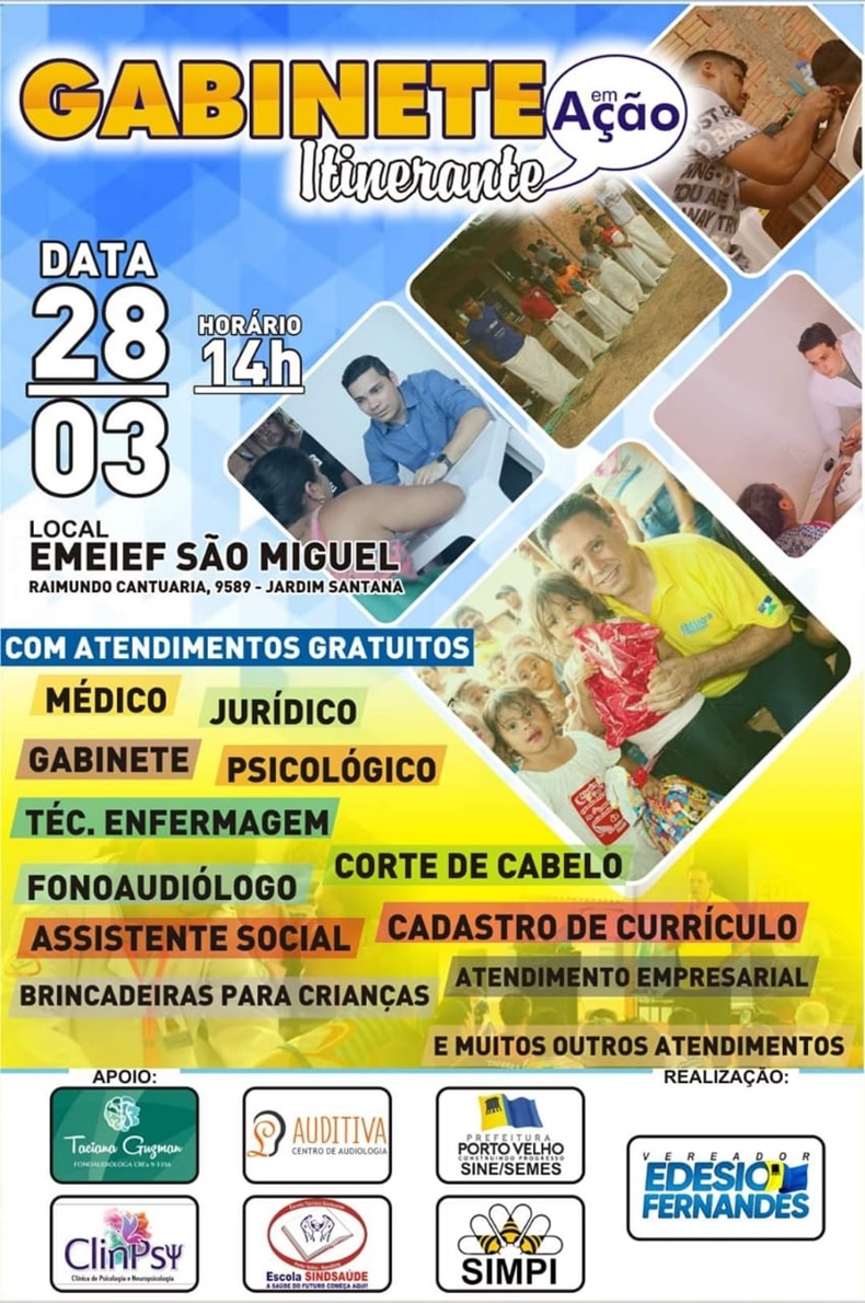 Através do vereador Edesio e voluntários do projeto, serão oferecidos a comunidade vários atendimentos que visam amenizar os grandes problemas sócias enfrentados pela população de Porto Velho.