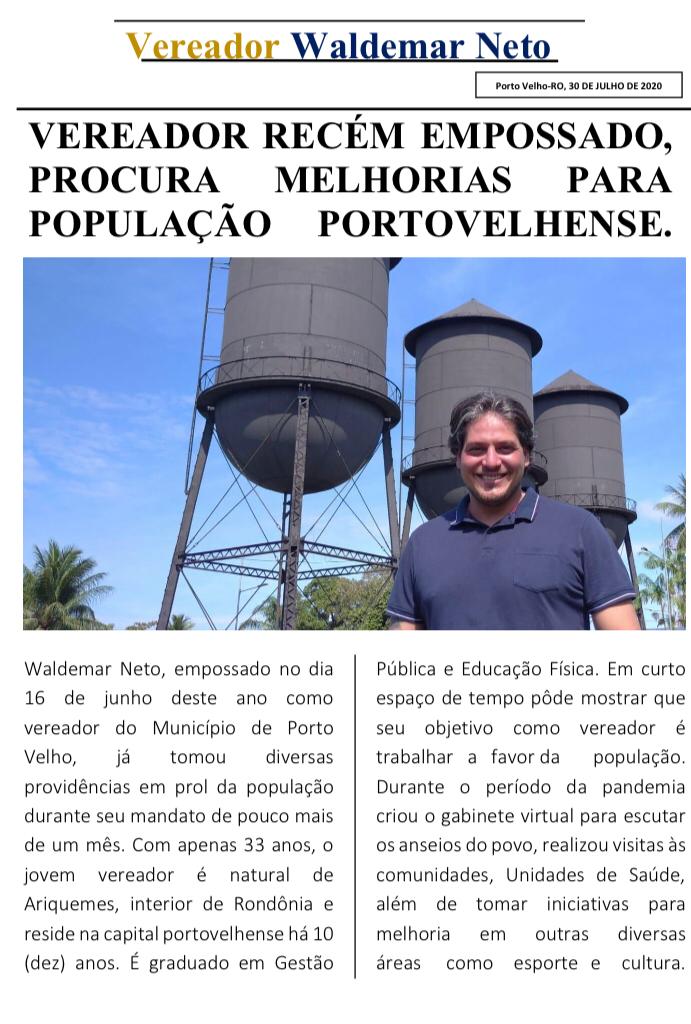 O Vereador Waldemar Neto, diante da pandemia do novo coronavírus (COVID-19), tem buscado utilizar ferramentas de comunicações alternativas vinculadas à tecnologia, internet e outros, afim de prestar contas à população sobre o trabalho que vem realizando na Câmara Municipal de Porto Velho, colher opiniões e sugestões sobre projetos e outras proposituras.
