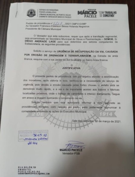 “Nosso mandato está atento às demandas de Porto Velho e seguimos na luta para fazer valer cada voto que recebi nas eleições do ano passado”, finalizou o vereador Márcio Pacele.