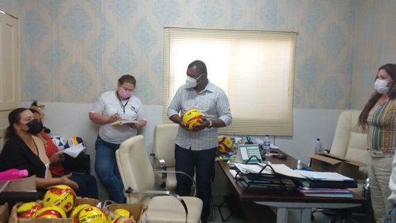 O Ver. Vanderlei Silva pode ver de perto alguns materiais que chegaram, como os uniformes de várias modalidades, para serem entregue as crianças e adolescentes.
