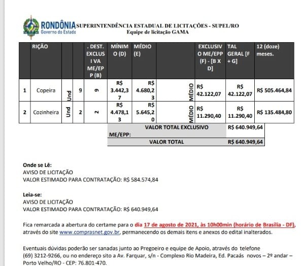 A Sugesp ainda informa que “no caso das cozinheiras, é apenas no âmbito da Sugesp, e medidas estão sendo desenvolvidas para prover serviços como contratações temporárias e concursos públicos em outras áreas. O suposto salário médio de R$ 5.645,20 pago a cada cozinheira, o que não é verdadeiro, pois se trata do custo total de cada colaboradora ao Estado, somado aí: salário, encargos trabalhistas, tributos e lucro da empresa terceirizada”.