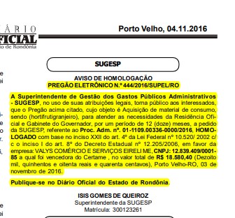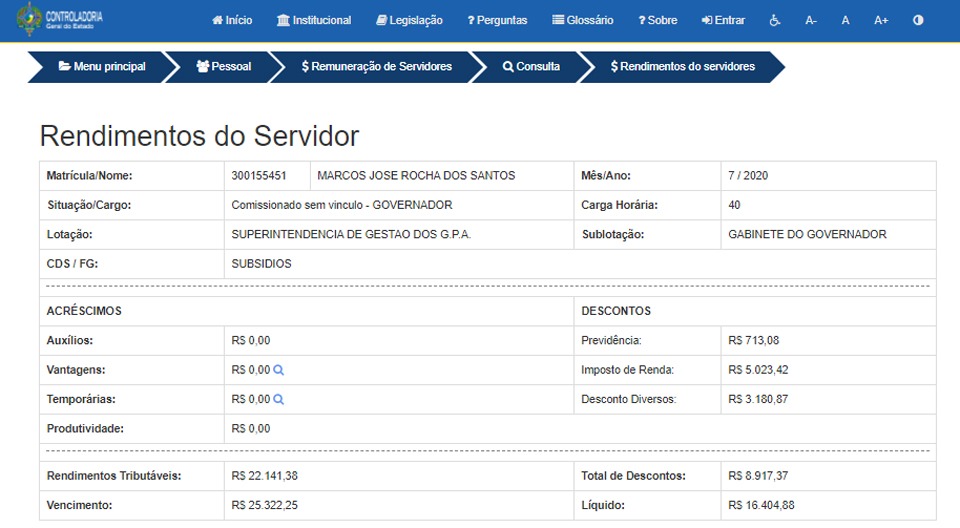 Rondoniaovivo não conseguiu localizar demonstrativos mais recentes, apenas até o mês de junho do ano passado.