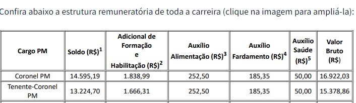 Comparações entre os salários dos maiores oficiais da PM de Rondônia