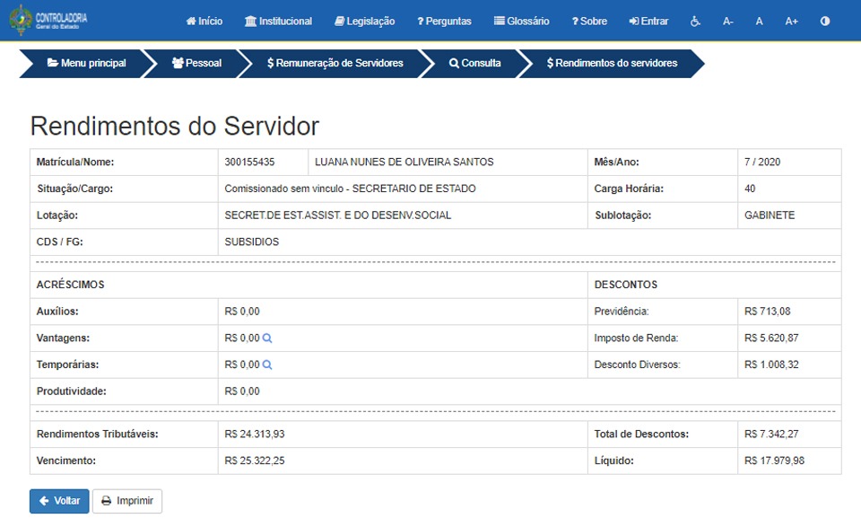 Salário da secretária Luana Rocha