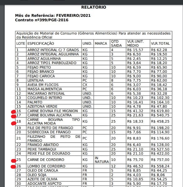 Se somarmos os 428 mil reais de alimentação (juntando os dois contratos de grãos, carnes e hortifrutigranjeiros) mais os 135 mil gastos com as cozinheiras do governador, além dos 72 mil em aluguel, seriam R$ 635 mil por ano.