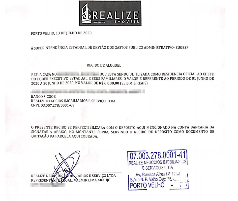 Já no aluguel da mansão onde o governador mora com a esposa e os filhos, a Sugesp informou que “se justifica no fato de que a Residência Oficial do Palácio Rio Madeira não está finalizada. Esse fato também não é inédito na história de Rondônia conforme demonstrado abaixo”.