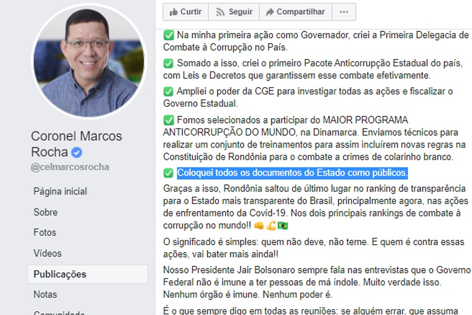 Sobre a alimentação, o texto minimizou os valores gastos por Marcos Rocha e sua família, pois “após correção do índice de inflação, não se diferenciaram dos praticados em gestões anteriores”.
