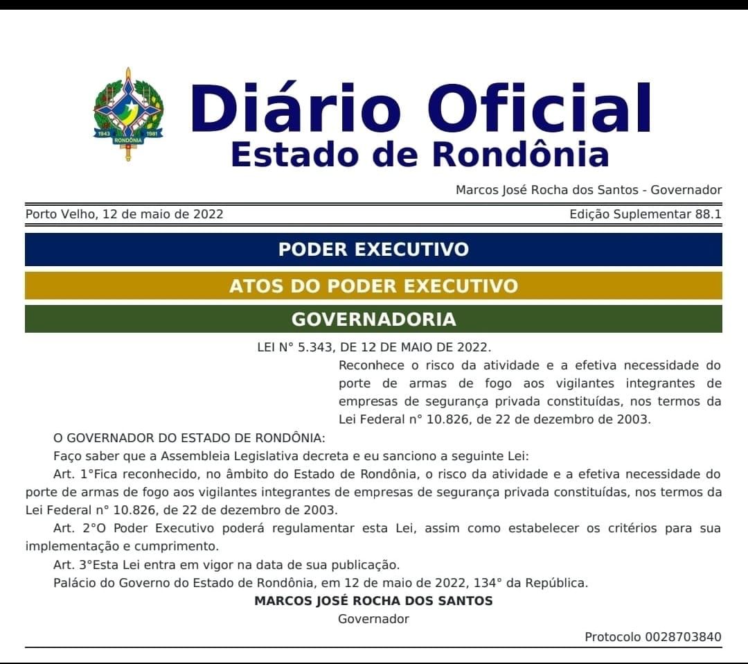 Lei 5.343/2022 foi sancionada pelo governador Marcos Rocha e dá oportunidade aos profissionais terem acesso ao porte de arma