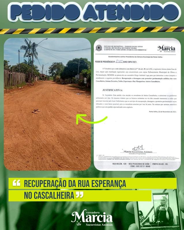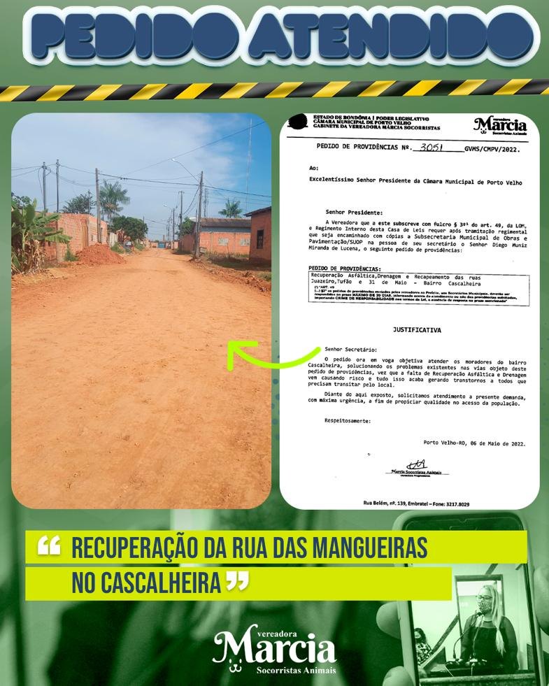 A Vereadora efetuou pedidos de providência para melhorias de várias ruas da cidade de Porto Velho através de pedidos da população