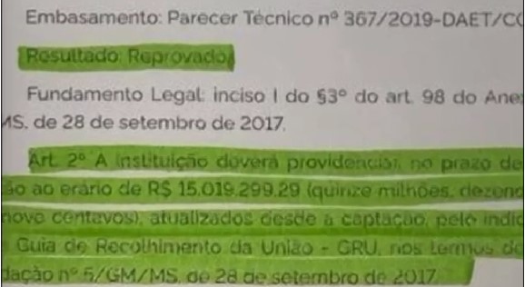 Ainda de acordo com o advogado, o Governo Federal já requisitou a devolução de mais de 15 milhões de reais da instituição à União, justamente por falta de prestação de contas.