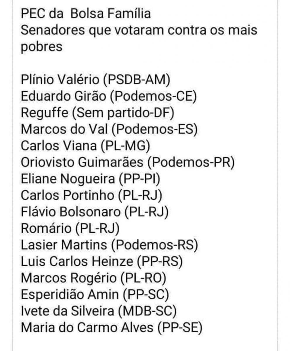 Rogério votou contra para embaralhar o próximo governo, para criar problemas para o futuro presidente, para complicar a vida da população mais necessitada a fim de promover uma “vingança” contra o eleitorado brasileiro que votou em Lula, ainda magoado pela derrota sobre Bolsonaro.