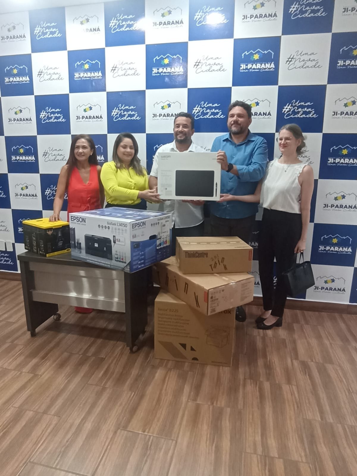 O Informatização Escolar executado em parceria com o Instituto Federal de Rondônia – IFRO segue a todo vapor. Na sexta-feira, 3, foram entregues equipamentos para o de Ji-Paraná avaliados em R$ 500 mil. O Investimento no Projeto em tecnologia educacional para o município é de R$ 1,5 milhão. O evento foi realizado no gabinete do prefeito Esaú Fonseca.