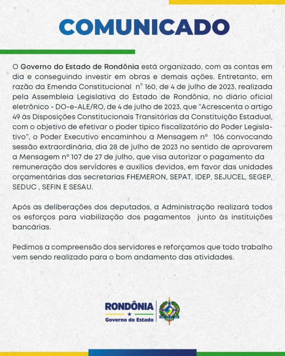 Diante disso, o presidente da Assembleia, Marcelo Cruz, também fez convocação urgente dos deputados para apreciação de vários vetos.