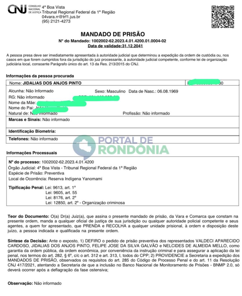 O Juiz Federal Victor Oliveira de Queiroz do Tribunal Regional Federal da 1ª Região, decretou a prisão do Ex-Deputado Estadual de Rondônia, Jidalias dos Anjos Pinto, popularmente conhecido como Tiziu.