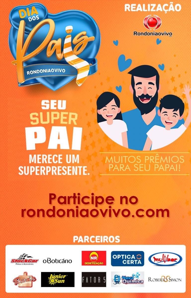 O Rondoniaovivo em parceria com a Roberto Simon Joias, Stock Car Acessórios, O Boticário, NR Dedetização, Óptica Certa, Multibar, Fator 5, Perea's Restaurante, Júnior Sun e Nova Química, vai realizar um festival sorteando 10 prêmios para tornar esse Dia dos Pais mais marcante.