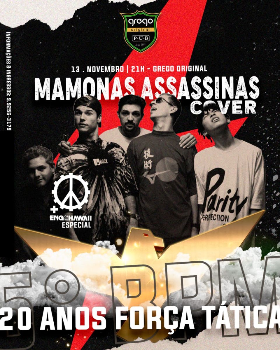 O Grego Original sempre oferece o melhor do Rock toda semana e no dia 13 de novembro (sábado) a partir das 21h, vai apresentar o cover Mamonas Assassinas + Especial Engenheiros do Hawaii em Porto Velho (RO).