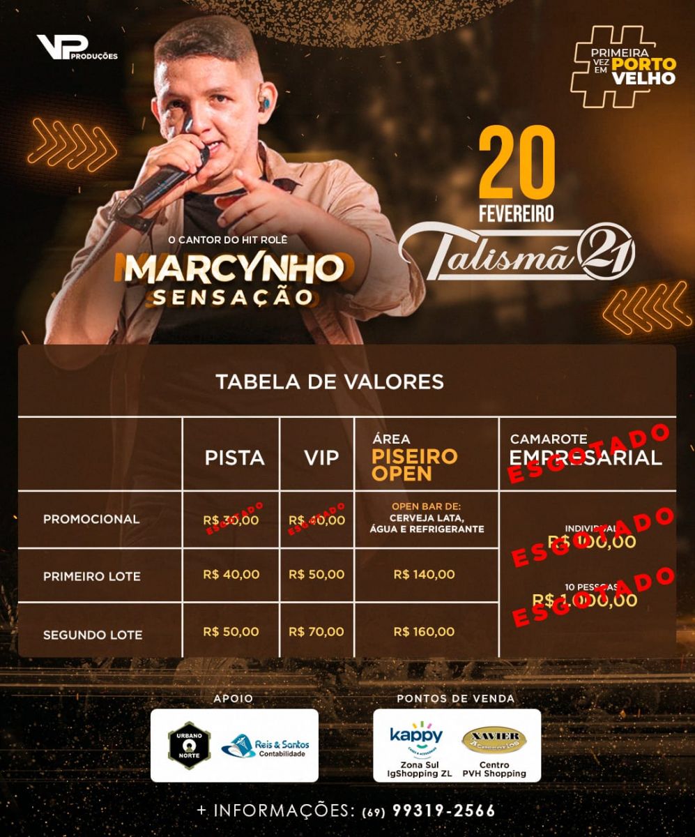 O Rondoniaovivo em parceria com a VP Produções preparou uma promoção relâmpago e sorteou três internautas para curtir o show do Marcynho Sensação, pela primeira vez em Porto Velho (RO).