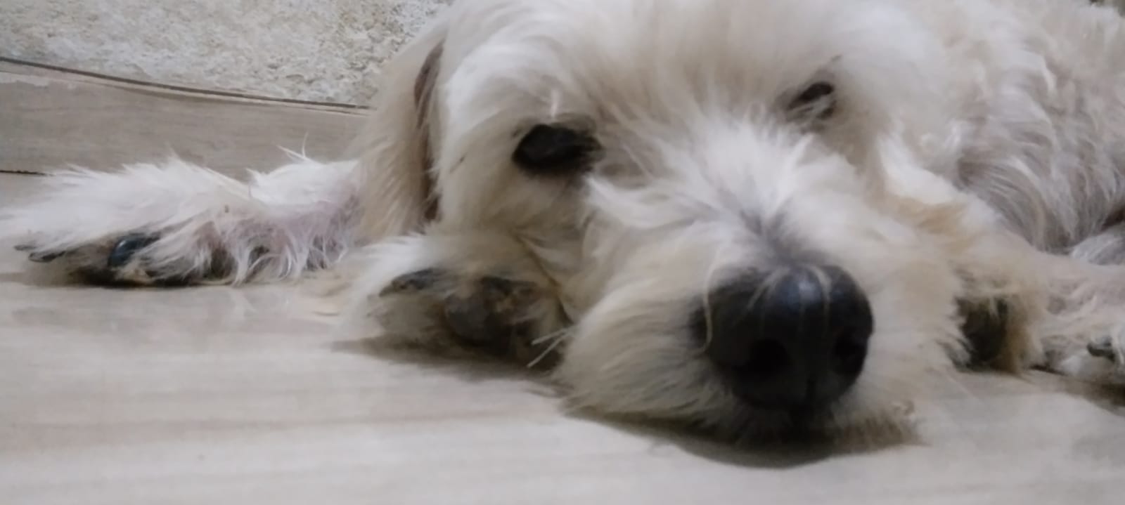 “Ele fugiu quando não tinha ninguém em casa. Ele [Marley] é um cachorro que fica dentro de casa - tem um problema na pele e precisa de cuidados”, disse Eline. Marley tem cerca de sete anos (44 em anos caninos), é de pequeno porte e tem cabelos brancos e longos.