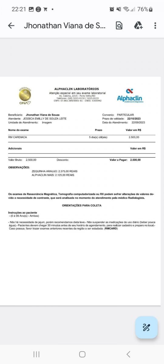 A situação é ainda mais desafiadora devido à necessidade de realizar um exame específico, cujo custo é de R$ 2.500,00. Uma quantia fora do alcance financeiro da família, que enfrenta dificuldades para arcar com despesas médicas em clínicas particulares.