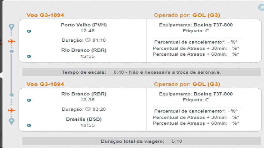 Na prática, os passageiros do Acre terão voo direto da Gol para Brasília e os de Porto Velho farão a viagem sem escala sempre partindo de Brasília. Os voos da Gol de Porto Velho para Rio Branco serão às segundas, quartas, quintas, sextas e sábados. As decolagens de Rio Branco para Brasília serão às segundas, quartas, quintas e sextas. De Rio Branco para Porto Velho os voos serão somente aos domingos.