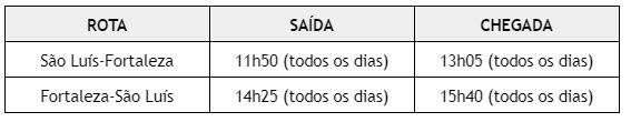 Com os voos, o deslocamento entre as capitais será otimizado. Do Maranhão ao Piauí o novo trajeto será seis vezes mais rápido. O que antes demandava pelo menos 5h30 de viagem com conexão em Brasília, se tornará 1 hora de voo direto. E, para chegar ao Ceará, o novo voo tornará a rota cinco vezes mais rápida, num voo de 1h15, sem a necessidade de uma viagem de pelo menos 6h30 com conexão no Distrito Federal.