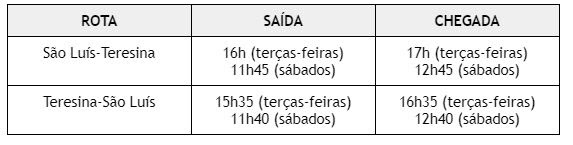 O voo São Luís-Teresina será operado duas vezes por semana por A320s de 170 assentos. As passagens aéreas começarão a ser vendidas nos próximos dias a partir de R$ 148,96 (preço por trecho com taxas inclusas) ou 3,5 mil pontos Latam Pass (por trecho) mais taxas de R$ 36,06.