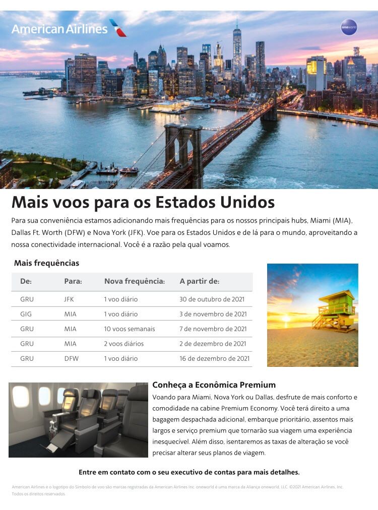 Ao todo, serão 35 voos semanais entre Brasil e Estados Unidos operados apenas pela companhia norte-americana em dezembro