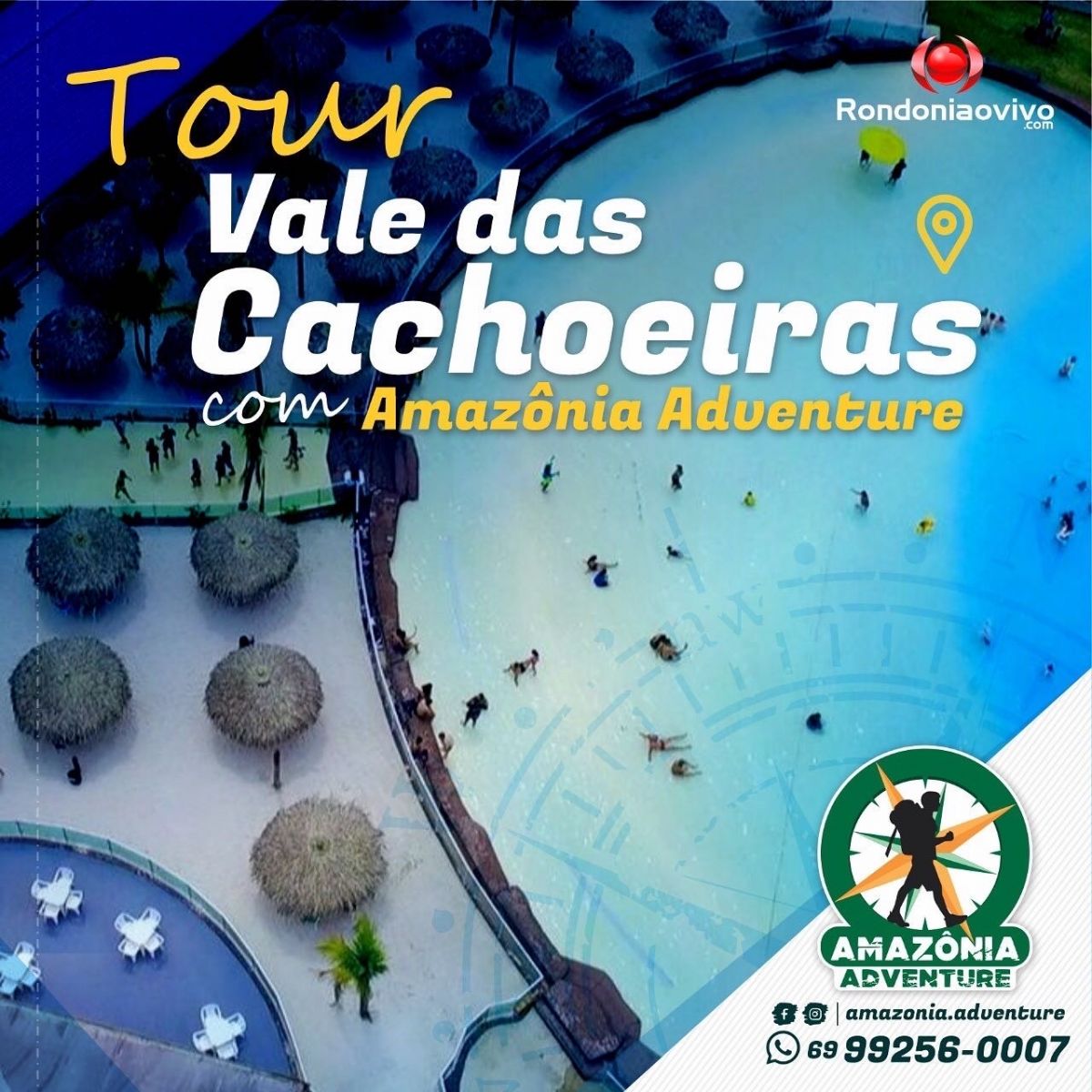 Levaremos clientes de Porto Velho e eixo da BR-364 para conhecer dois lindos empreendimentos turísticos Vale das Cachoeiras & Graúna Resort, localizados no município de Ouro Preto do Oeste, interior de Rondônia, a 334 km da capital, que conta com a maior “Piscina de Ondas” da região Norte.