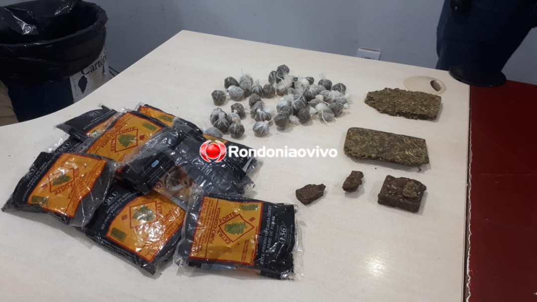 Foram encontradas na cela B11 da penitenciária, 39 porções de maconha, mais quatro tabletes da mesma substância e 12 pacotes de tabaco