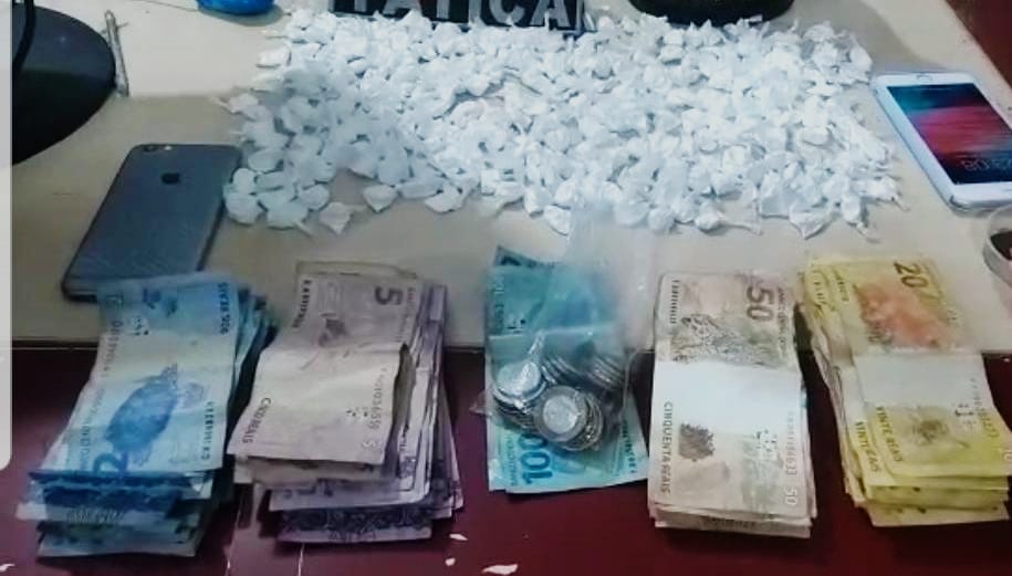 Com ele foram apreendidas cerca de 300 porções de cocaína e a quantia de quase R$ 3 mil