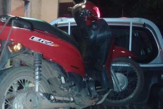 Conforme informações prescritas em boletim de ocorrência, os suspeitos ocupavam uma motocicleta Honda Biz de cor vermelha e placa NDH - 9575, quando foram abordados pela PM