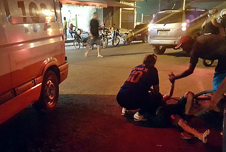 A vítima caiu ao chão e sofreu um corte no joelho, além de lesões leves em outras partes do corpo