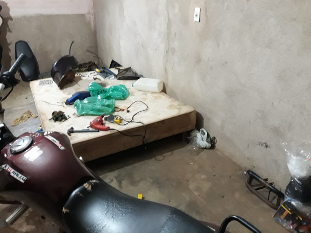 Dentro da residência, os militares localizaram as motocicletas, sendo que uma delas já estava tendo o chassi adulterado