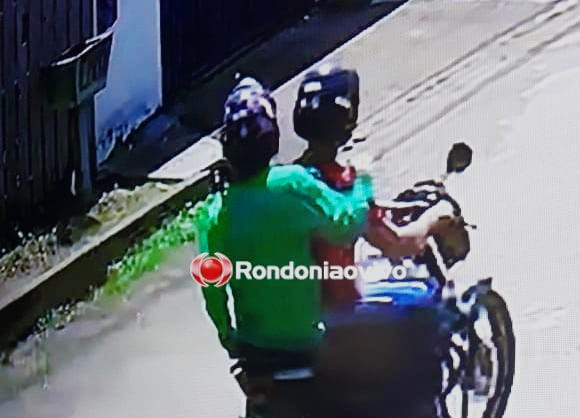 No vídeo é possível ver os bandidos caminhando na rua e a vítima que tinha ido deixar uma jovem em uma residência vai saindo com a motocicleta