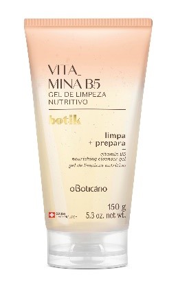 *Vitamina B5 Gel Nutritivo de Limpeza:limpa e prepara a pele. A Vitamina B5 é um ativo reconhecido por manter a hidratação essencial da pele, respeitando seu equilíbrio natural.