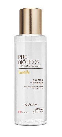 *Prebióticos Tônico Micelar:purifica e protege, mantendo o pH da pele. Os Prebióticos são poderosos ativos reconhecidos por favorecer a flora bacteriana, protegendo a barreira cutânea da pele do ressecamento.