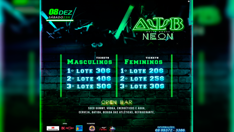Reúna os amigos e amigas e venham se divertir com a gente dia 08/12 no Delta House Neon Party, a partir da 23h00.